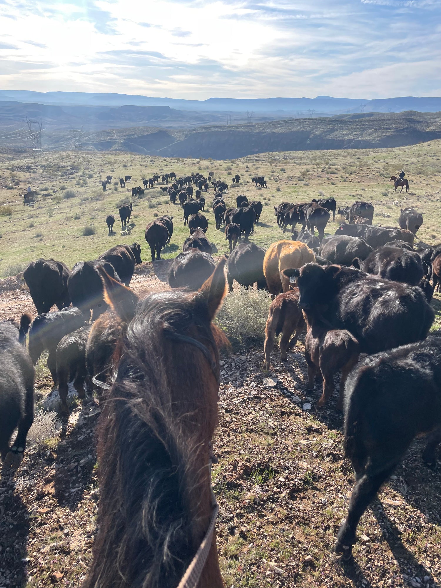 Following this backgrounding period, the calves return to the range until they reach approximately 1,000 pounds. At that stage, they undergo a finishing period of at least 90 days, where they are fed a high-quality diet of hay, brewery grain, and corn. Our brewery grain is sourced locally from Silver Reef Brewery, giving our beef a distinct, sought-after flavor and texture that sets us apart from other producers.